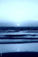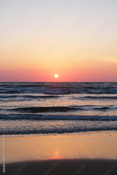 美しい夕暮れの海と夕陽の風景、日本海、稲佐の浜
