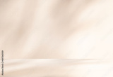 Wall interior background, studio and backdrops show products. with leaf shadow from window color beige and white. background for text insertion and presentation of product