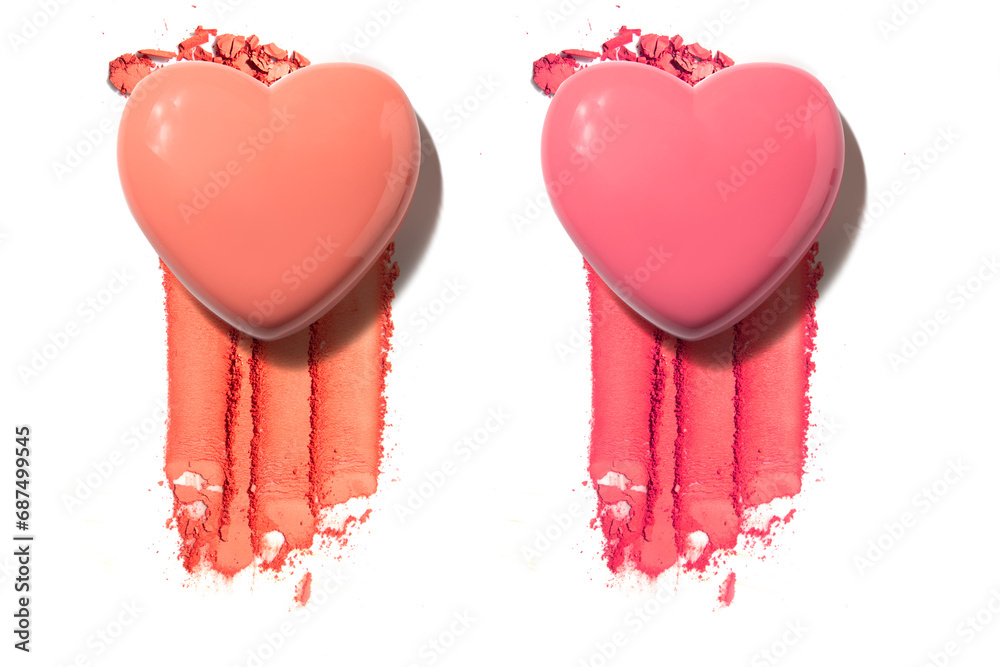 comapct of powder blusher matte for makeup cosmetic product mockup with candy heart shape design