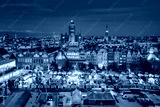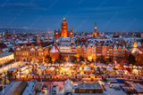 Beautifully lit Christmas market in the Main City of Gdansk at dawn. Poland