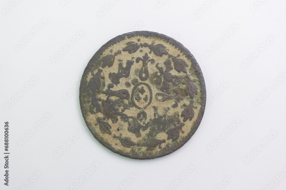 old spanish coin antique metal sign collecting hobby mint inscri
