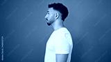 Young arab man looking to the side with serious expression over isolated blue background