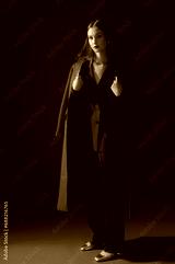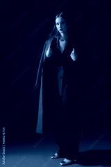 Fashionable confident woman wearing trendy red suit double breasted blazer, classic trousers, midi coat, metallic color shoes, posing on red background. Full-length studio fashion portrait