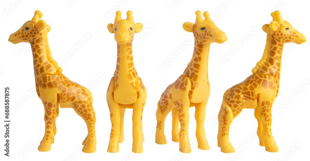 old plastic toy giraffe, side view, front view, isolated on transparent or white background, png