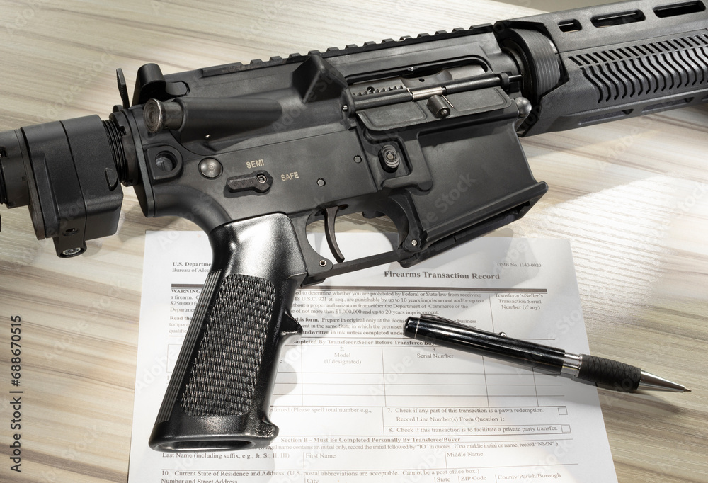 Background check 4473 from the FBI that must be completed and passed to buy an assault rifle