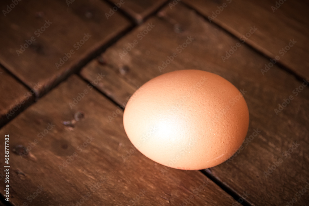 Egg on a rustic wooden board