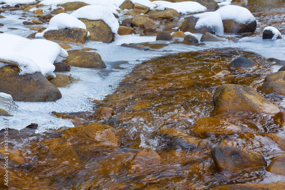 small frozen brook in mountain