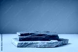 Piece of granite stone against beige background with shadows