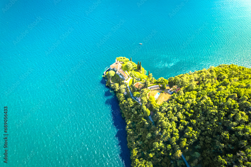 Villa Balbianello on Lake Como aerial view, Town of Lenno