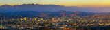 Sunset panorama of downtown Glendale and San Gabriel Mountains in the background viewed from Griffith Park near Los Angeles, California.
