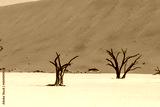 Overview of the petrified dead trees in the Deadvlei area of Namibia