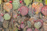 Santa Rita Prickly Pear Lit with Morning Sunlight. The Arizona Cactus Garden in Stanford, California, USA.