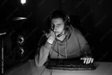 Young male cybersport gamer in headset with microphone using keyboard while playing video game in dark room illuminated by neon light looking at camera