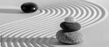 Japanese zen garden with stone in white textured sand