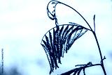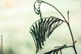 Mimosa green leaves silhouette against light green background. Tropical fern leaf natural background. Plants growing, cultivation. Gum Arabic tree Vachellia nilotica. Isolated mysterious plant.