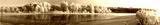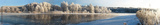 Panorama view of river partly covered in ice with reflection of snow covered trees