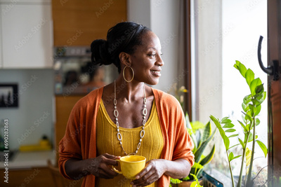 Portrait of a smiling mature woman standing in her apartment