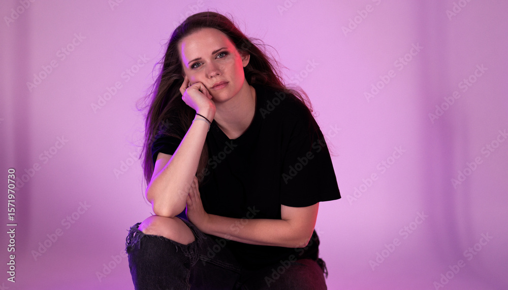 Beautiful woman posing for pictures at sunset in the desert - travel photography