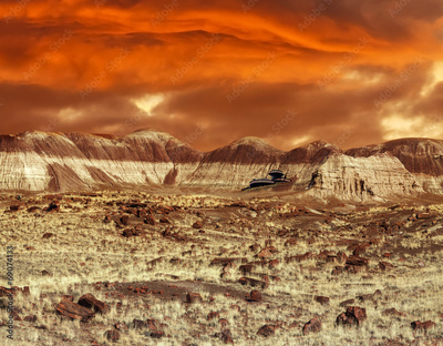 Base on Mars. Abstract design looking like martian surface.