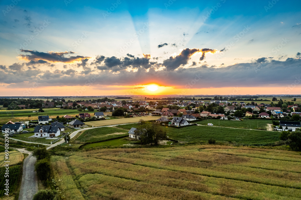 Zachód słońca, krajobraz, polska wieś, pola, chmury