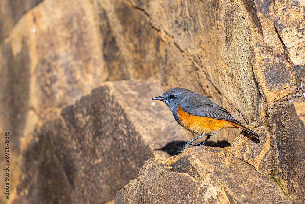 Little rock thrush, Monticola rufocinereus. The Asir Mountains, Saudi Arabia.