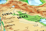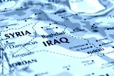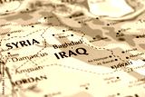 world map of middle east countries, iraq, syria, kuwait, bagdad, kirkuk, damascus in close up