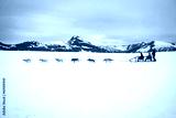 Tourists are pulled by a dog sled along the Norris Glacier in Al