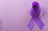 Purple ribbon on pastel paper background for supporting World Cancer Day campaign on February 4.