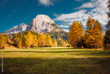 A majestic view of the mighty rock on a sunny day. South Tyrol, Italy, Europe.