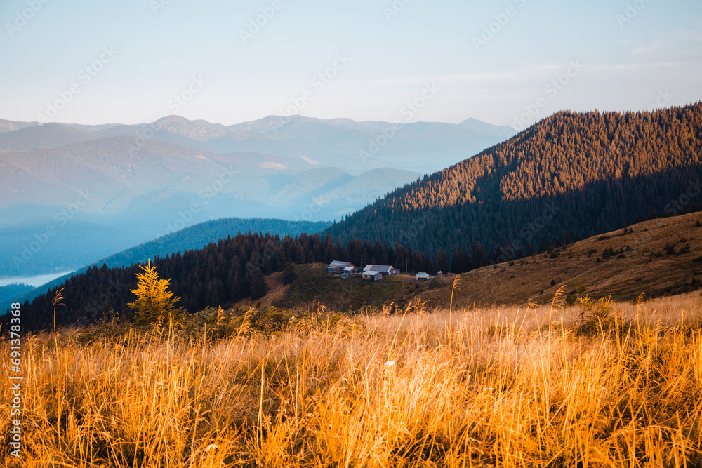 Perfect landscape of a rolling countryside on a sunny day. Carpathian mountains, Ukraine, Europe.