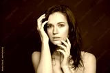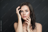 Glamorous fashion beauty model brunette with clear skin and dark hair. Beautiful young female face closeup portrait