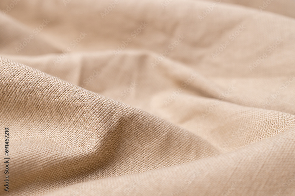 Natural linen fabric texture. Rough crumpled burlap background. Selective focus