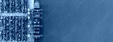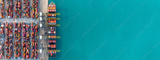 Aerial view container cargo ship at container cargo seaport terminal, Container cargo ship maritime freight shipping global business logistic import export worldwide international by container ship.