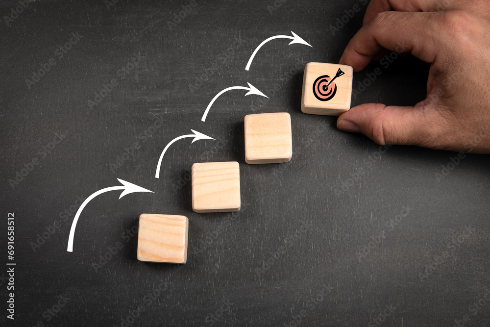 GOAL Concept. Wooden blocks on a dark chalkboard background