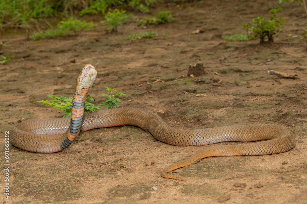 A highly venomous Mozambique Spitting Cobra (Naja mossambica) spitting its venom