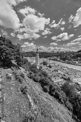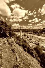 Schönes Stadtpanorama von Burghausen mit der berühmten Burg in Bayern, Deutschland. Es ist die längste Burganlage der Welt.