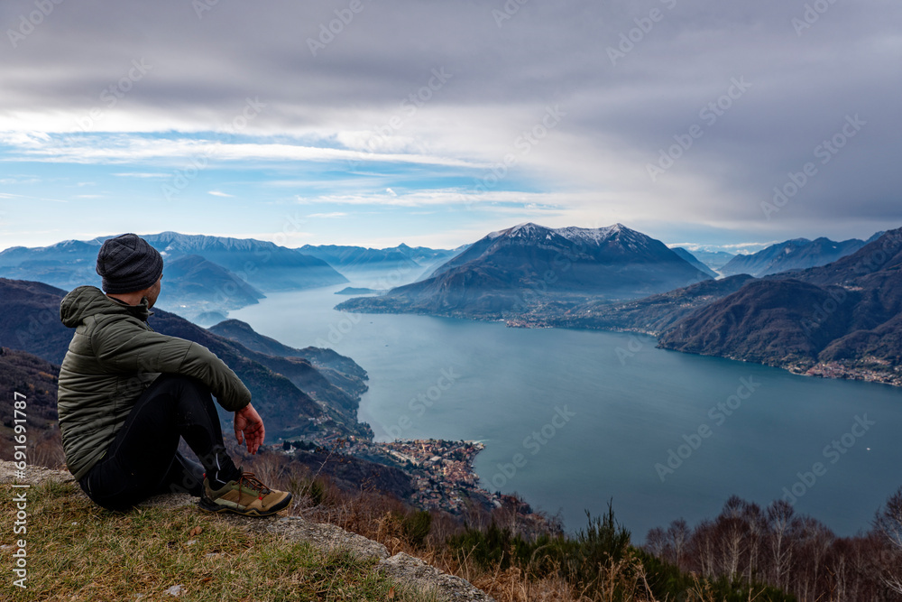 Landscape of Lake Como from Camaggiore Alp in Valsassina