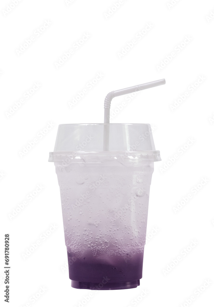 Blueberry italian soda drink in glass with straws.