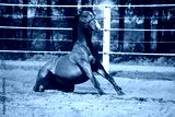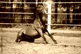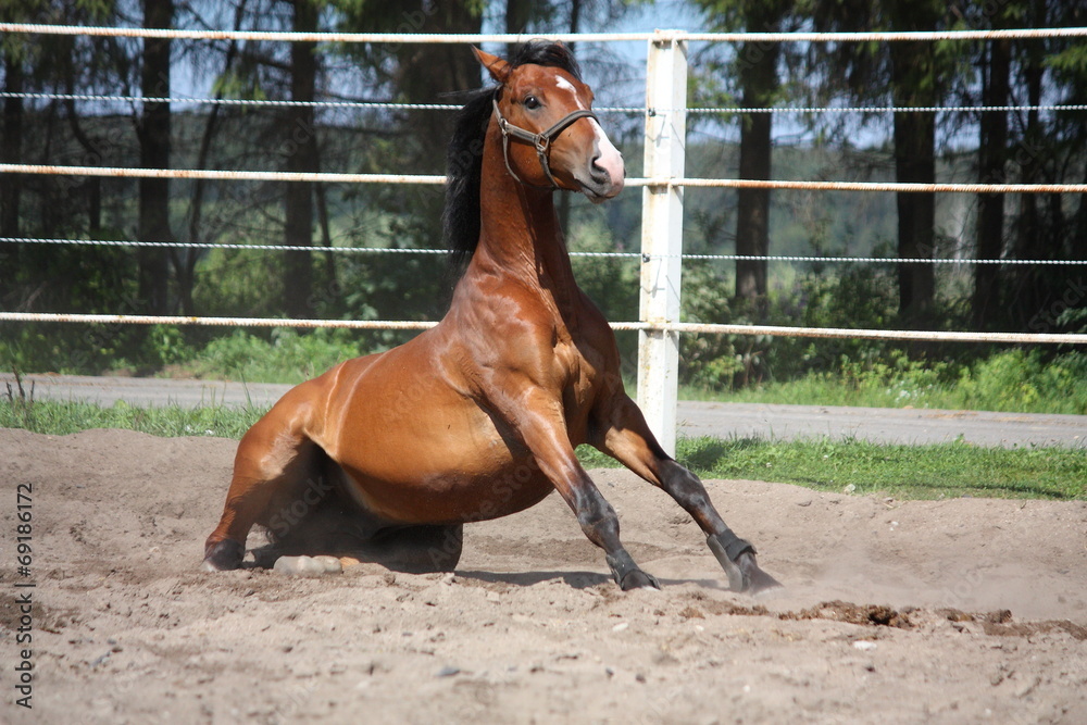 Brown horse sitting on the ground