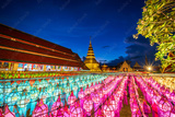 Beautiful Lanna lamp lantern are northern thai style lanterns in Loi Krathong or Yi Peng Festival at Wat Phra That Hariphunchai is a Buddhist worship temple It a tourist attraction Lamphun Thailand.