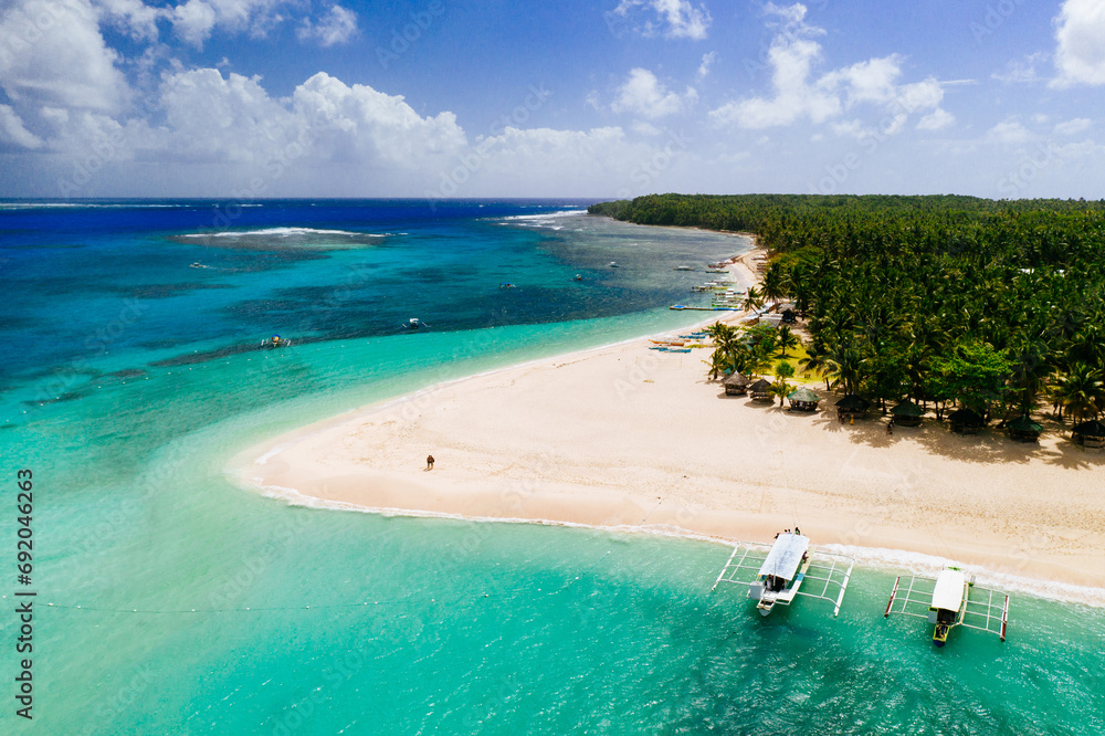 Daku island view from the sky. Man relaxing taking sunbath on the beach.shot taken with drone above the beautiful scene. concept about travel, nature, and marine landscapes