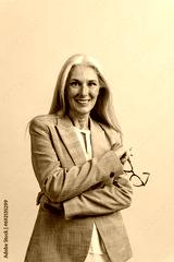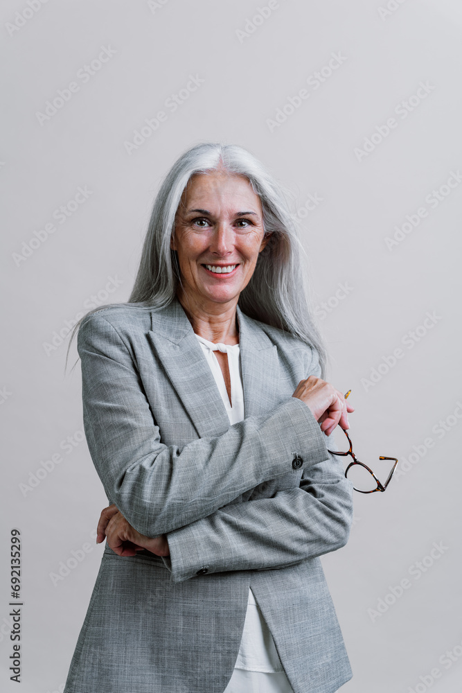 Beautiful senior woman posing on a corporate business photo session.