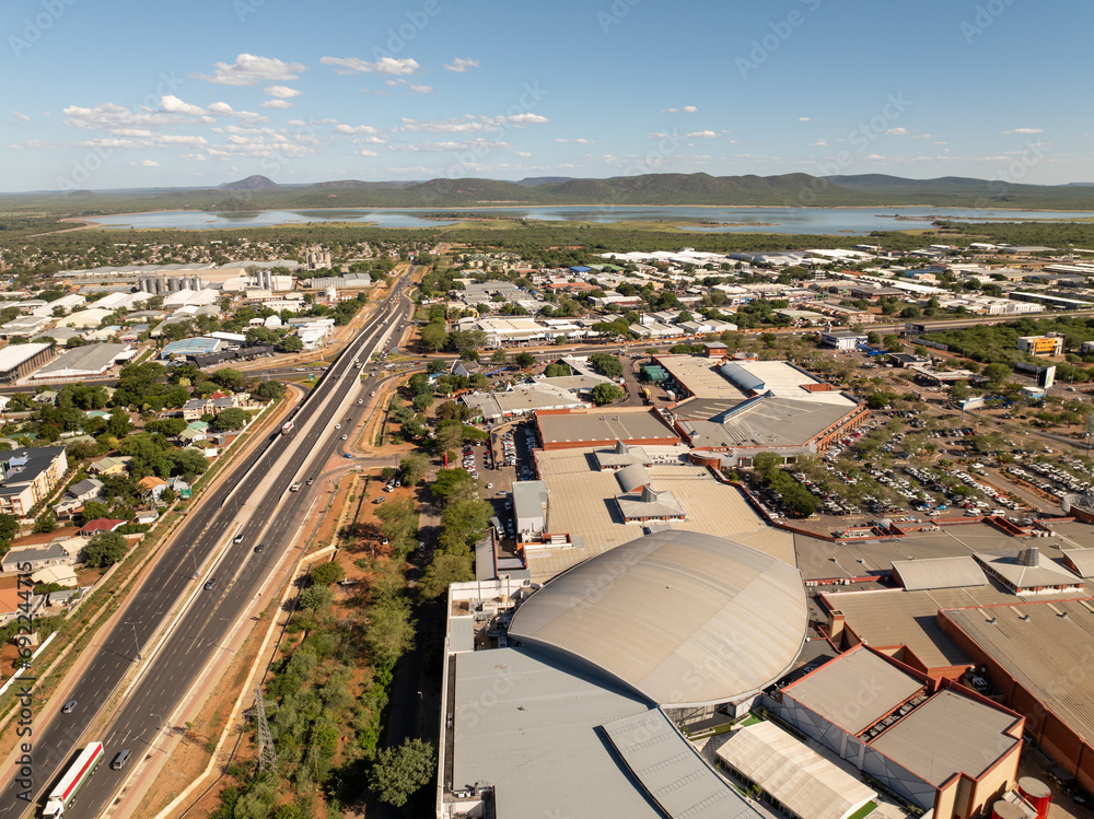 aerial view Gaborone city, industrial area and Gaborone dam in the background