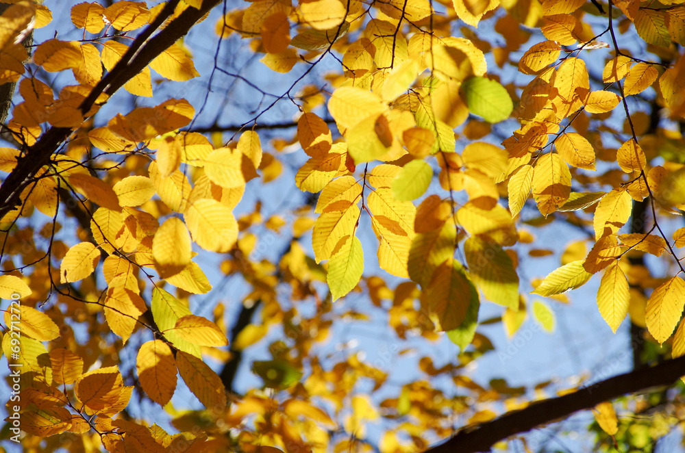 Yellow leaves on a twig in autumn