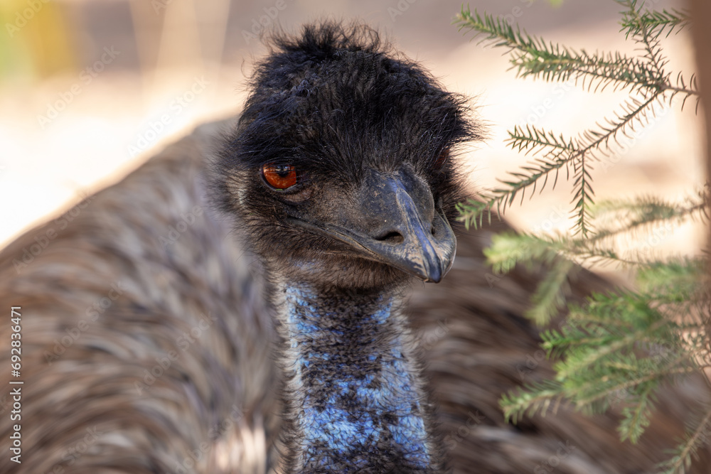 Emu (Dromaius novaehollandiae) sitting in the shade.