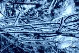 Tree branch covered with ice. Glaciated tree branches, consequences after freezing rain.