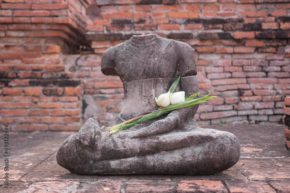 Headless buddha statue at Wat Mahathat historical park in Ayuttaya, Thailand