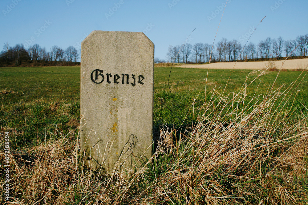 Grenze - alter Grenzstein am Feldrand Wiesenrand im Sommer