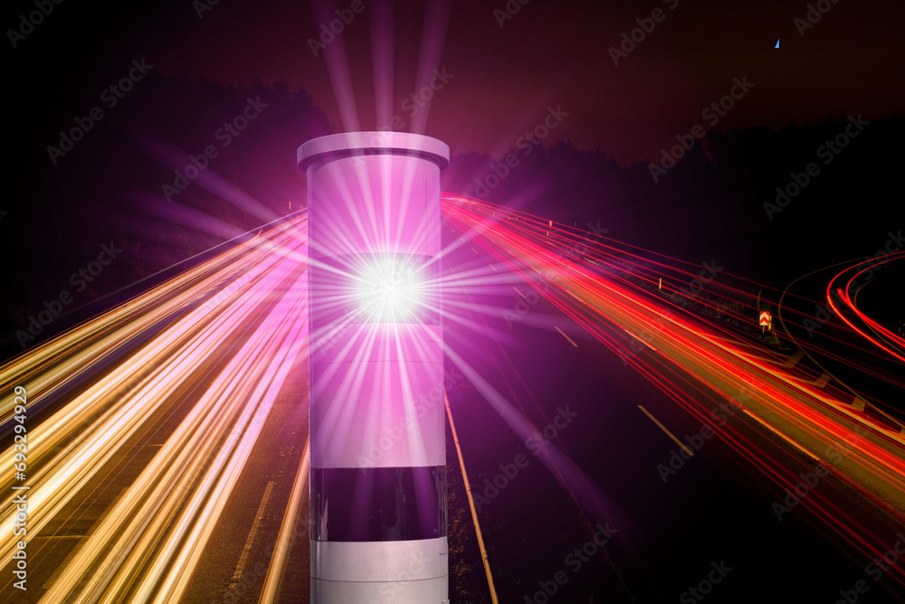 Geschwindigkeitskontrolle mit einem Blitzer an der Straße