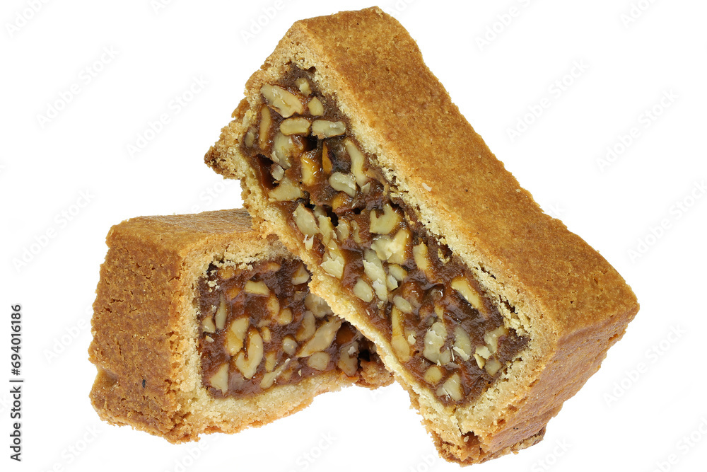 Engadine walnut cake isolated on white background